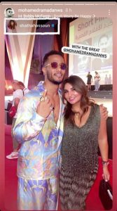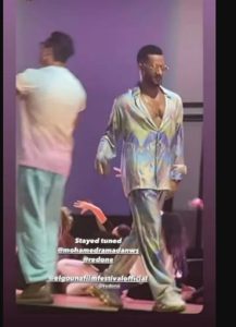 في أكتوبر 2021، ظهر النجم محمد رمضان في البروفات الأخيرة لحفل افتتاح مهرجان الجونة وهو يرتدي بدلة ستان بلون أزرق فاتح وطبعات ورود عليها.