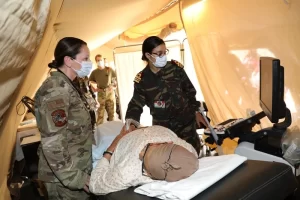 زار وفد رفيع المستوى من القيادة العامة للقوات المسلحة الملكية والجيش الأمريكي، يوم الاثنين، المستشفى الطبي الجراحي الميداني الذي أقيم على مستوى جماعة تالوين (إقليم تارودانت).