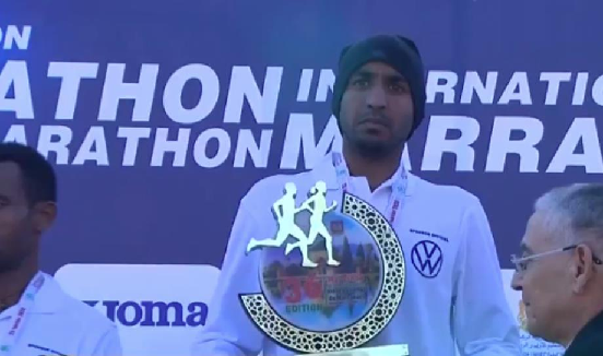 وقطع العداء المغربي مسافة السباق (42,195 كيلومترا) في زمن قدره ساعتان و7 دقائق و34 ثانية، متفوقا على الإثيوبي يلي هاييمرو (ساعتان و8 دقائق و19 ثانية)، ومواطنه يونس بنار (ساعتان و8 دقائق و42 ثانية).