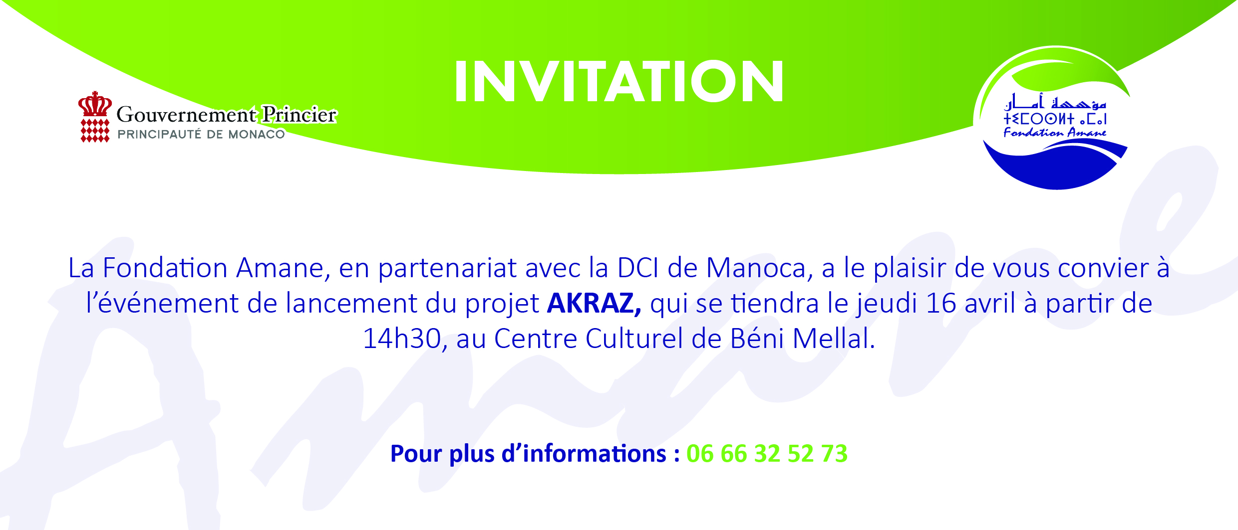 بني ملال – أعلنت مؤسسة أمان، بشراكة مع مديرية التعاون الدولي لحكومة إمارة موناكو، عن تنظيم حفل إطلاق مشروع “أكراز: أرض الأمل” يوم الخميس 16 أبريل 2026 على الساعة الثالثة زوالًا بدار الثقافة ببني ملال، وذلك بحضور حوالي 120 مشاركًا يمثلون جمعيات وتعاونيات ومقاولات ومؤسسات عمومية، إلى جانب شخصيات فاعلة على المستوى الجهوي، في مبادرة تهدف إلى تعزيز الإدماج الاقتصادي والاجتماعي للشباب، خاصة فئة NEET.