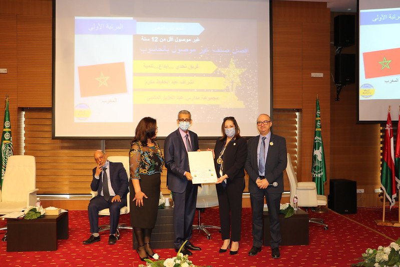 وأسفرت منافسات هذه التظاهرة، التي تقام لأول مرة على المستوى العربي، وتميزت بمشاركة مغربية نوعية، بلغت 2333 مشاركة من بين 13352 نشاطا مسجلا على منصة الأسبوع العربي للبرمجة، من مختلف الأكاديميات الجهوية للتربية والتكوين، عن تتويج ثلاث مؤسسات تعليمية مغربية في صنف مسابقة المعرض الذهبي صنف “غير الموصول بالحاسوب”، حيث حصلت مجموعة مدارس عبد العزيز الماسي بالمديرية الإقليمية اشتوكةأيت باها بالأكاديمية الجهوية للتربية والتكوين جهة- سوس- ماسة، على المرتبة الأولى محرزة الميدالية الذهبية وذلك في الفئة العمرية الأقل من 12 سنة،كما أحرزت ثانويتا ابن النفيس الإعدادية امزوطة بالمديرية الإقليمية شيشاوة أكاديمية جهة مراكش- آسفي في الفئة العمرية ما بين 12 و15 سنةوالثانوية التأهيلية 3 مارس سيدي رضوان بالمديرية الإقليمية وزان أكاديمية جهة طنجة- تطوان- الحسيمة، في الفئة العمرية ما بين 15 و18 سنة المرتبة الثانية،منتزعتين، بذلك، ميداليتين فضيتين، فيما احتلت مدرسة صلاح الدين الأيوبي ومدرسة مولاي يعقوب،التابعتين للمديرية الإقليمية مولاي يعقوب بأكاديمية جهة فاس مكناس، المرتبة الثالثة، الأولى في مسابقةالمدرسة الذهبية والثانية في مسابقة النشاط الذهبي.
