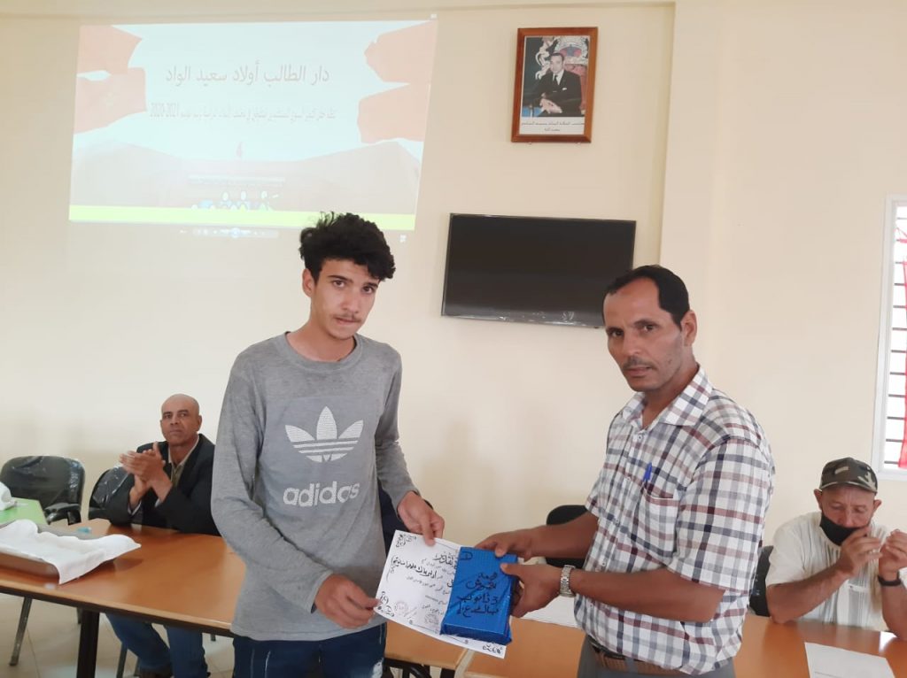 تنزيلا لبرنامج عملها السنوي ،نظمت دار الطالب أولاد سعيد الواد بإقليم بني ملال عصر يوم أمس  الخميس, حفل التميز لتتويج المتفوقين دراسيا من مستفيديها في مختلف الأسلاك الدراسية برسم الموسم 2020/2021.