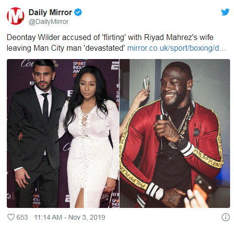 وأضافت الصحيفة، أن محرز البالغ 28 عاما أصيب بصدمة كبيرة لدى سماعه بأن زوجته قضت أمسيتها على مائدة وايلدر في الملهى الليلي.