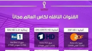 وتتداول على نطاق واسع في منصات التواصل الإجتماعي، صورة للقنوات التي ستعمل على نقل مونديال قطر بالمجان وبدون تشفير على غرار النسخ الماضية من كأس العالم خاصة القناة الألمانية ZDF.