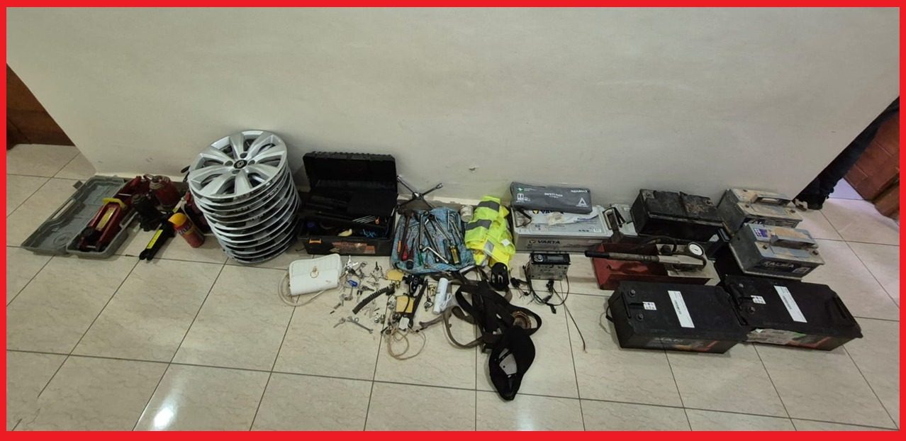وفي سياق الأبحاث والتحريات، أسفرت الإجراءات الميدانية عن تحديد هوية المشتبه فيه الرئيسي وتوقيفه وهو في حالة تلبس بمحاولة سرقة بطارية شاحنة بمدينة وجدة. وعلى إثر ذلك، قادت الأبحاث المتواصلة إلى تحديد هوية شخص ثانٍ يشتبه في ارتباطه بهذا النشاط الإجرامي، حيث تم توقيفه والعثور بحوزته على مجموعة من قطع غيار السيارات، فضلاً عن صدرية وشارة خاصة بالقوات العمومية يشتبه في كونها متحصلة من إحدى عمليات السرقة.