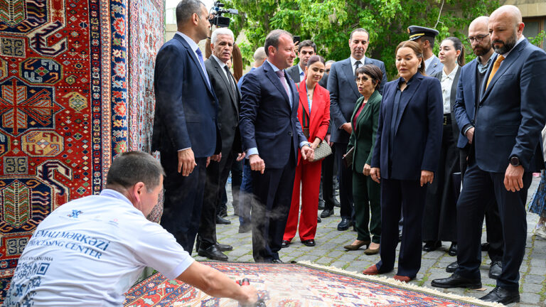 وتابعت صاحبة السمو الملكي الأميرة للا حسناء، مرفوقة بالسيدة ليلى علييفا والسيدة أرزو علييفا، شروحات حول خمسة أنواع جديدة من السجاد تم إنتاجها في إطار مشروع “إحياء فن نسج السجاد الأذربيجاني: أصالة وابتكار” قبل أن تشرف، طبقا للتقليد الأذربيجاني، على تقطيع السجاد المنسوج الجديد “نقشي جهان” الذي تم إنتاجه في قسم التكنولوجيات التقليدية بالمتحف الوطني للسجاد في أذربيجان، كخطوة رمزية تميز ولادة سجاد جديد.