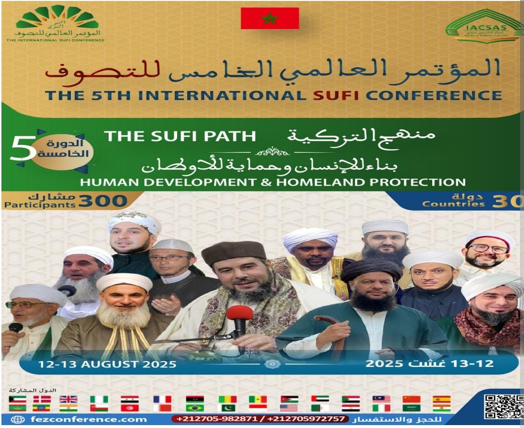 تحتضن العاصمة العلمية للمملكة المغربية فاس، ما بين  12 و13 غشت 2025، فعاليات المؤتمر العالمي الخامس للتصوف الذي ينظمه المركز الأكاديمي الدولي للدراسات الصوفية والجمالية .