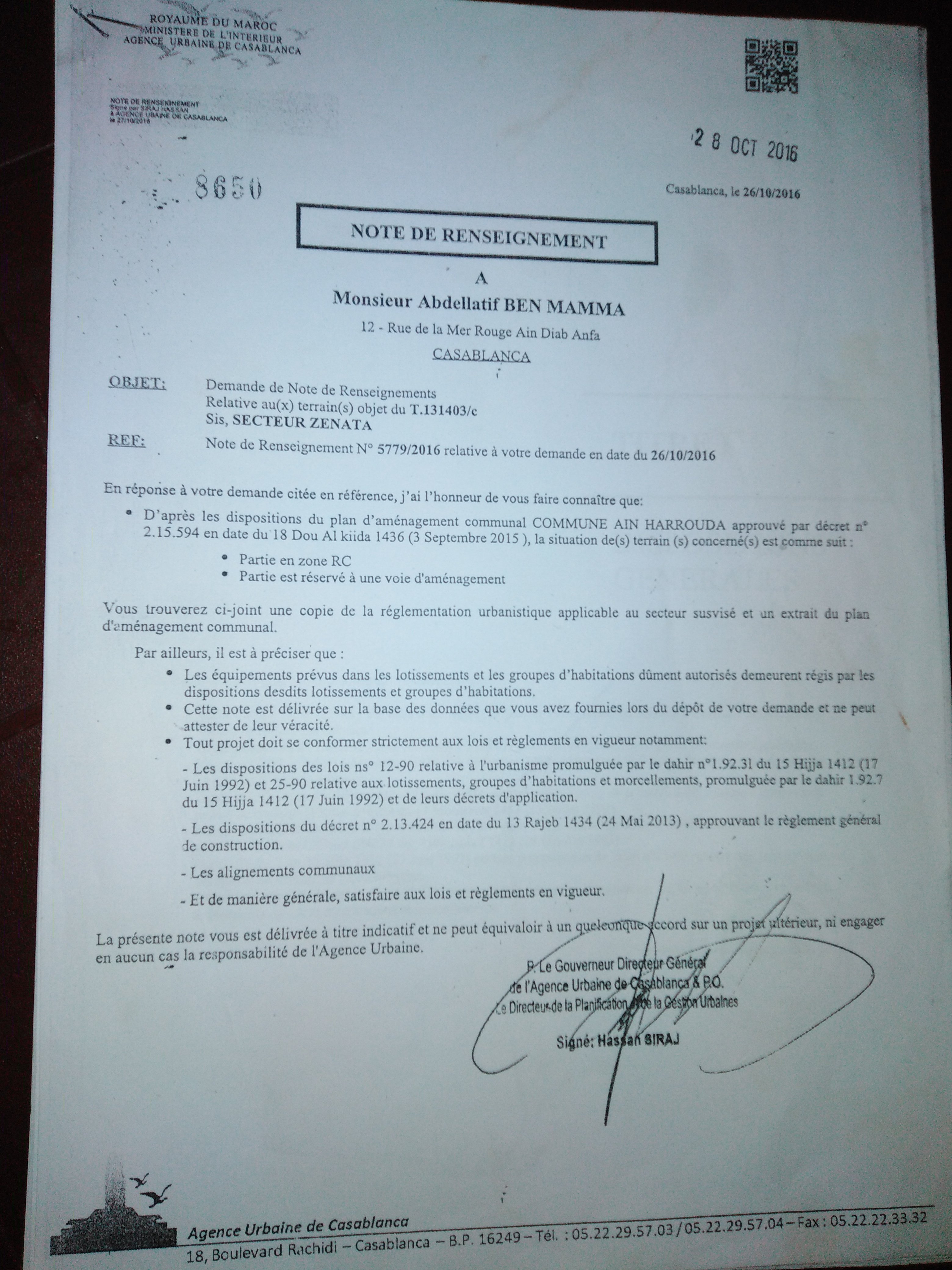 كما وجه بعض الملاك، شكايات إلى ديوان المظالم بتاريخ 2/2/2018 تحت رقم 5683583، الذي أحالهم على الوكالة الحضرية المعنية، التي تقول في وثائقها بأن هذه الأراضي تدخل في إطار منطقة RC، دون أن تكلف نفسها عناء شرح ما يقع للملاك، كما ورد في تصريحاتهم للصحيفة الإلكترونية.