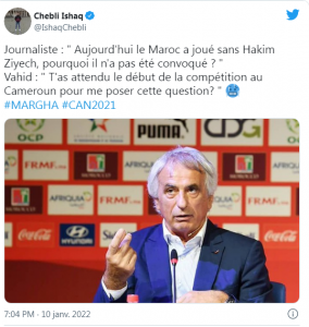 سأل الصحفي الذي تلقى ردًا لاذعًا من المدرب الوطني: “اليوم، لعب المغرب بدون حكيم زياش، لماذا لم يتم استدعائه؟”