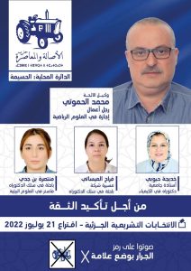 لائحة حزب الأصالة و المعاصرة للانتخابات التشريعية الجزئية بالدائرة المحلية للحسيمة – اقتراع 21 يوليوز 2022صوتوا على حزب الأصالة و المعاصرة (PAM) و ذلك بوضع علامة X على رمز الجرار.
